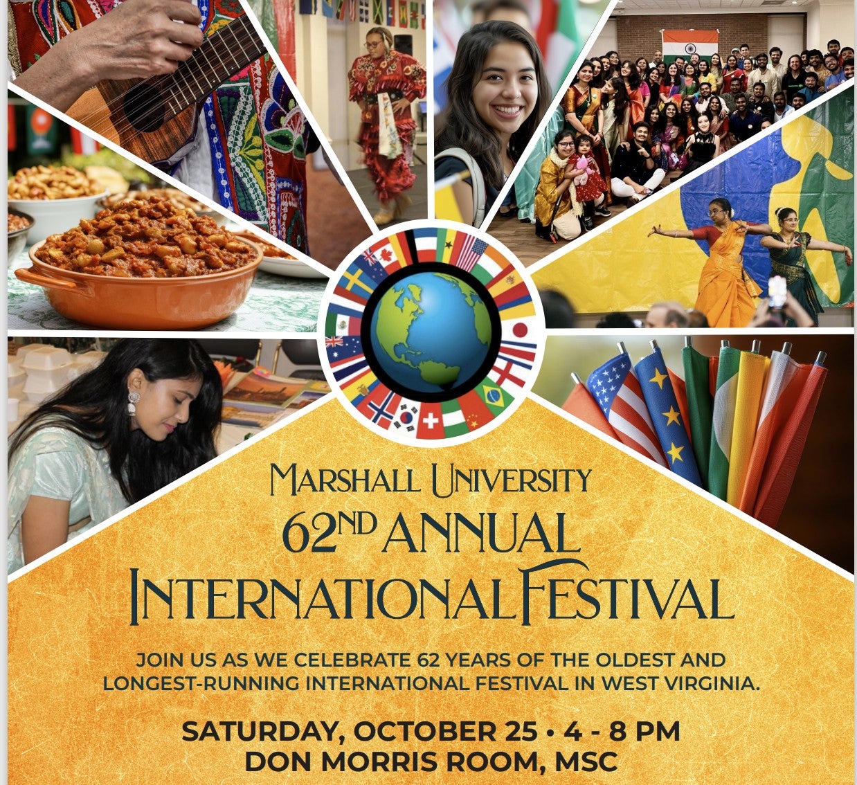 West Virginia’s oldest and longest-running international festival will return to Marshall University from 4 to 8 p.m. Saturday, Oct. 25, in the Don Morris Room of the Memorial Student Center. The 62nd Annual International Festival celebrates global cultures through food, music and community connection.