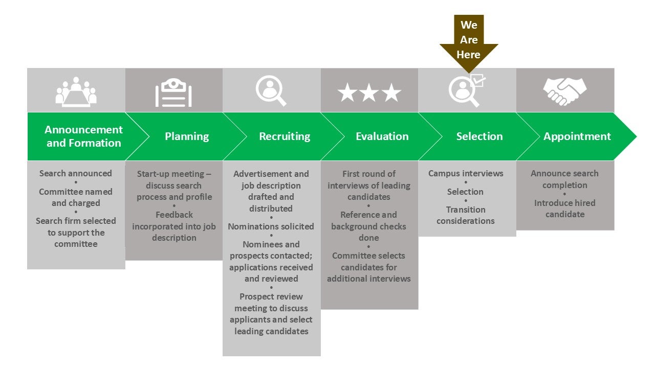 Search Committee meets with consultants to select semifinalists for initial interviews |